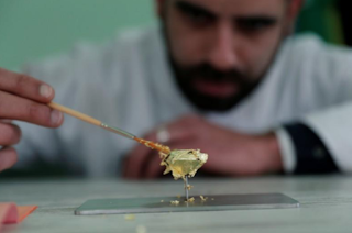 The world’s most expensive chocolate went on display at a chocolate fair in Obidos in Portugal on Friday. Priced at 7,728 euros ($9,489) and covered in edible gold, the chocolate is part of a limited edition of 1,000 bonbons. It has a filling of saffron threads, white truffle, vanilla from Madagascar and gold flakes. It was guarded by two uniformed men. Its creator, Portuguese chocolatier Daniel Gomes, said the diamond-shaped chocolate was certified as the world’s most expensive by the Guinness Book of Records, which in 2017 listed $250 La Madeline au Truffe made by Danish artisan chocolate-maker Fritz Knipschildt’s as the record holder. Its crown-shaped box is decorated with 5,500 Swarovksi crystals and also carries personalized pincers.